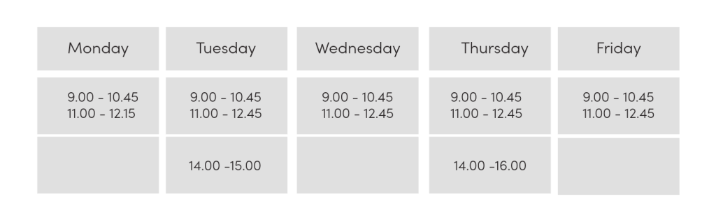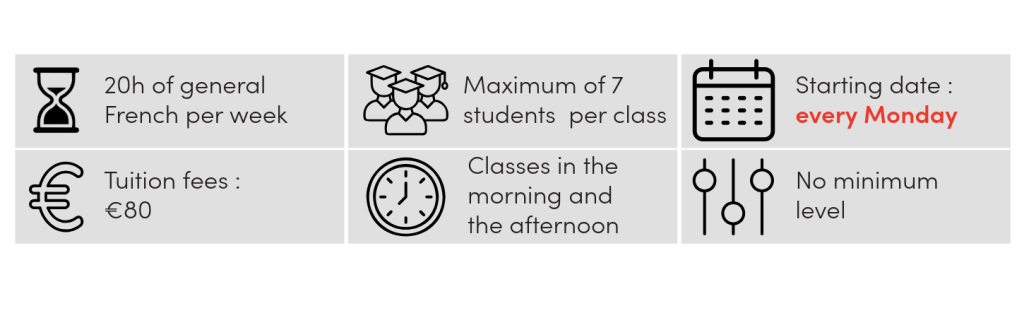 Our courses start every Monday. You can choose the Monday that best suits you. Be aware that when it is a public holiday, the lessons will start the day after.